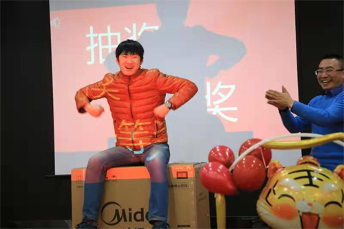 整個晚會經過富松總務部的精心策劃,整個年會高潮迭起,各個部門都表演了豐富多彩的文藝演出,有舞蹈、小品、唱歌還有相聲,文藝演出中間還穿插了好幾輪獎品抽獎和游戲互動環節,有你比我猜、公雞下蛋、傳氣球和尋寶大作戰,尤其是最后一個游戲尋寶大作戰,全體員工積極參與,整個氣氛熱烈歡騰,嗨翻全場,員工們在酒桌上肆意開著玩笑,拎著酒瓶拿著酒杯串桌進行車輪戰的比比皆是,大家吃得痛快,喝的高興,游戲玩的興奮,拆獎品拆的手軟。