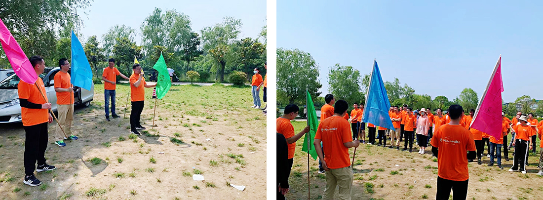 公司為了讓員工享受到更好的體驗,特地邀請了專業團隊進行策劃,員工們在到達目的地之后,先前往了活動的草坪,首先開始的破冰環節在熱身的同時也拉近了彼此之間距離,一時間場地上都是相互捶背,相互擁抱的情景,氣氛空前的熱烈起來,之后教練將員工們分成四隊為了下午的PK賽做好準備。